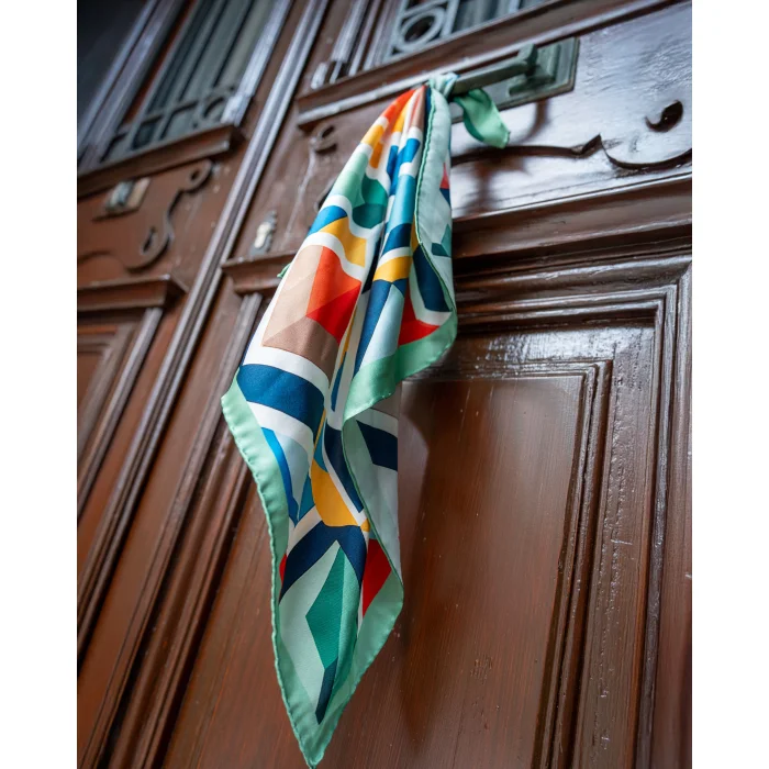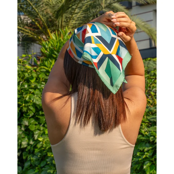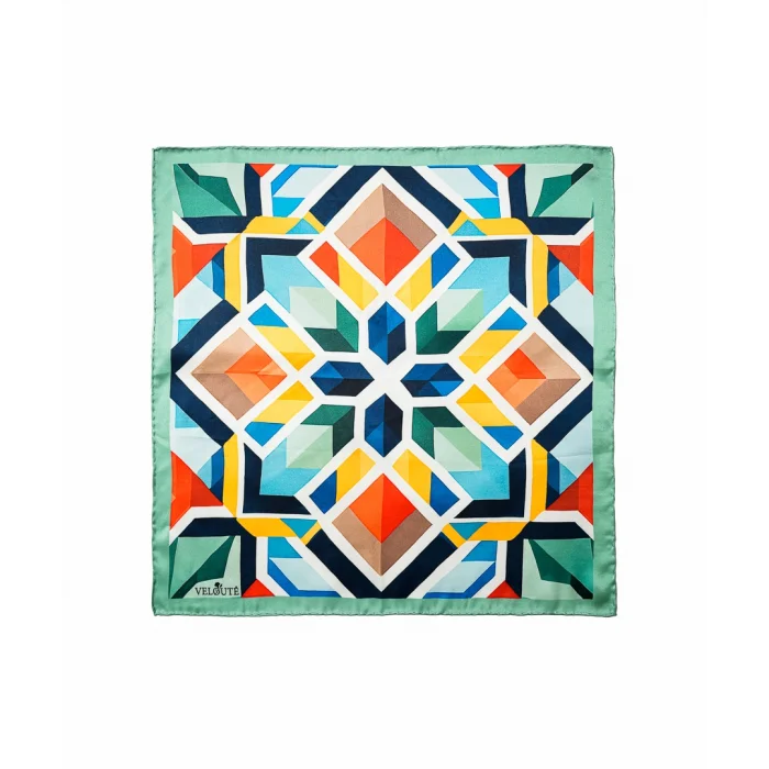 Material and weaving type: 100% Pure Silk Satin 14mm Size: 52x52 Edge seams are handcrafted. It is finalized by hand sewing.
