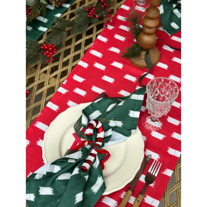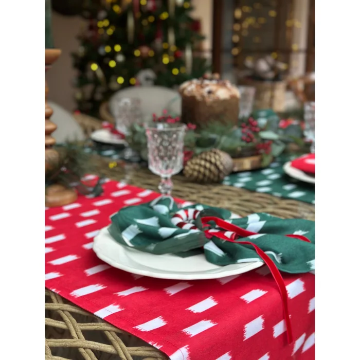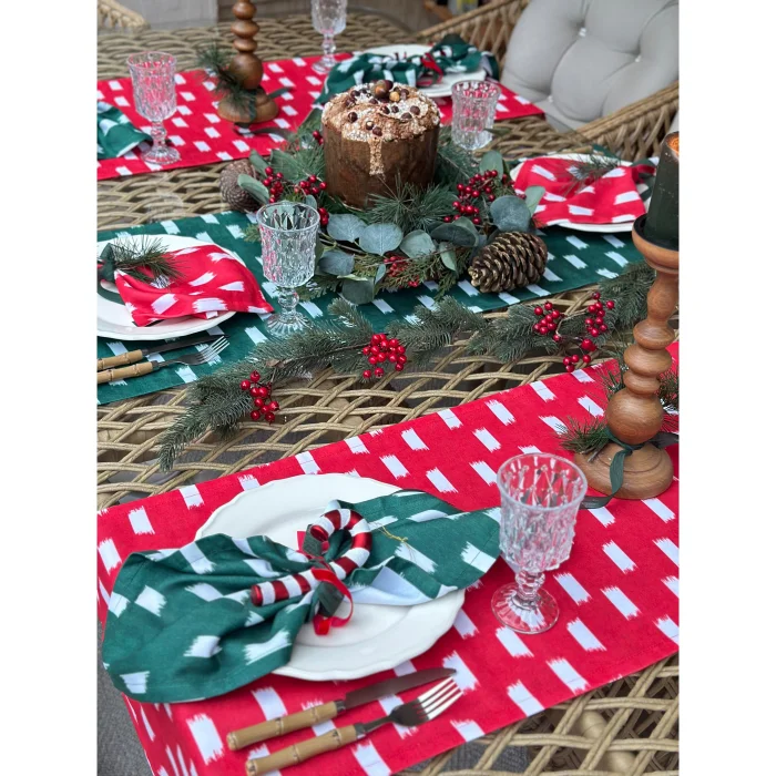 43x140 cm. The product is 100% polyester linen textured fabric. It does not stain. All paints used in our products are Oeko-Tex® certified and environmentally friendly.
