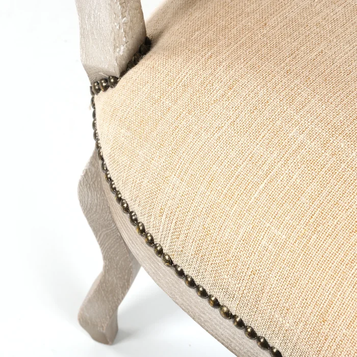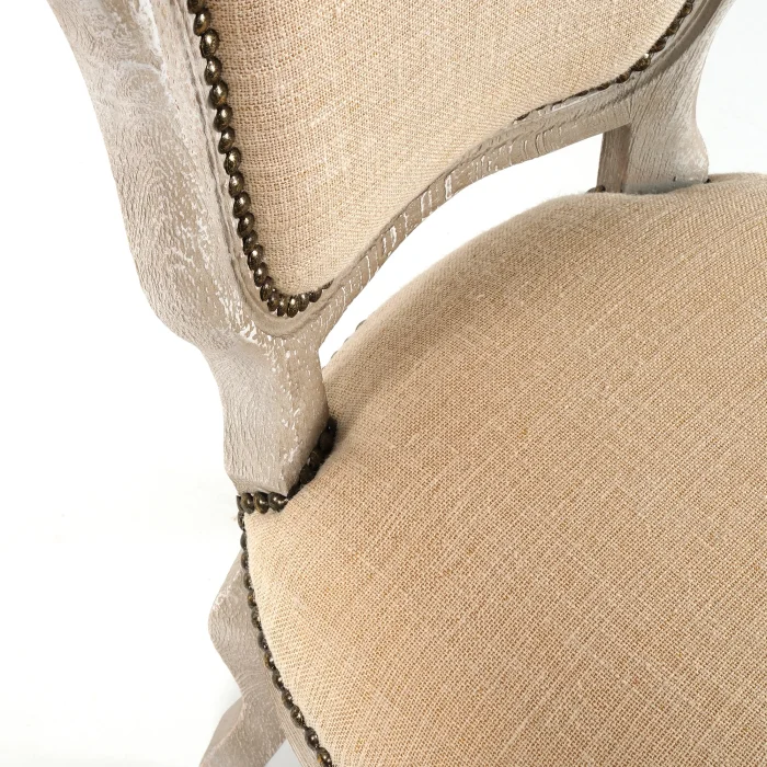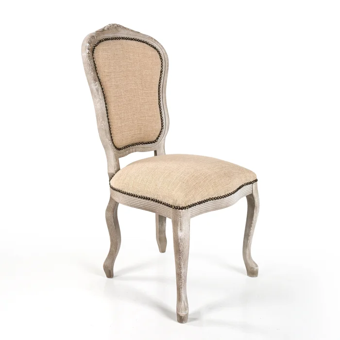 With its raw linen textured fabric and wooden frame with an aged effect, it fits perfectly into both classic and rustic spaces. It can be used as a stylish complementary piece in dining rooms, boutique hotels, entrance halls or make-up tables.