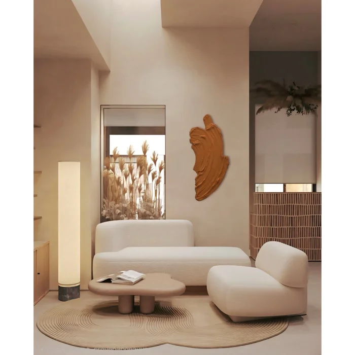 Relief was applied with polymer material on a completely handmade shaped MDF background, covered with colored acrylic paint and glossy varnish. Each piece of this set can be purchased separately or combined in different combinations. Hanging apparatus is included in each piece. Measurements: 80 × 32 cm, color: orange. It can hang both horizontally and vertically. There is a hanging apparatus.