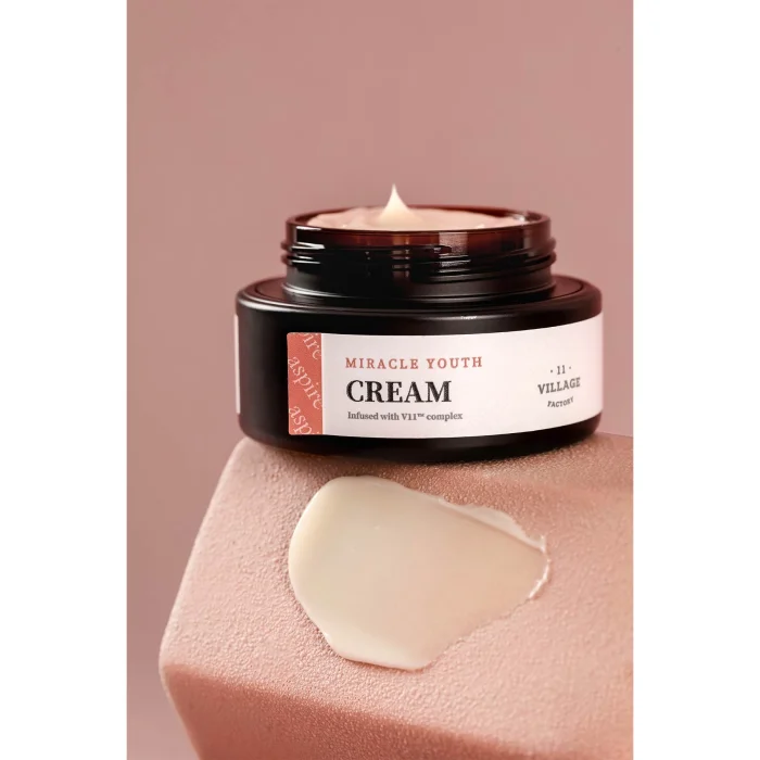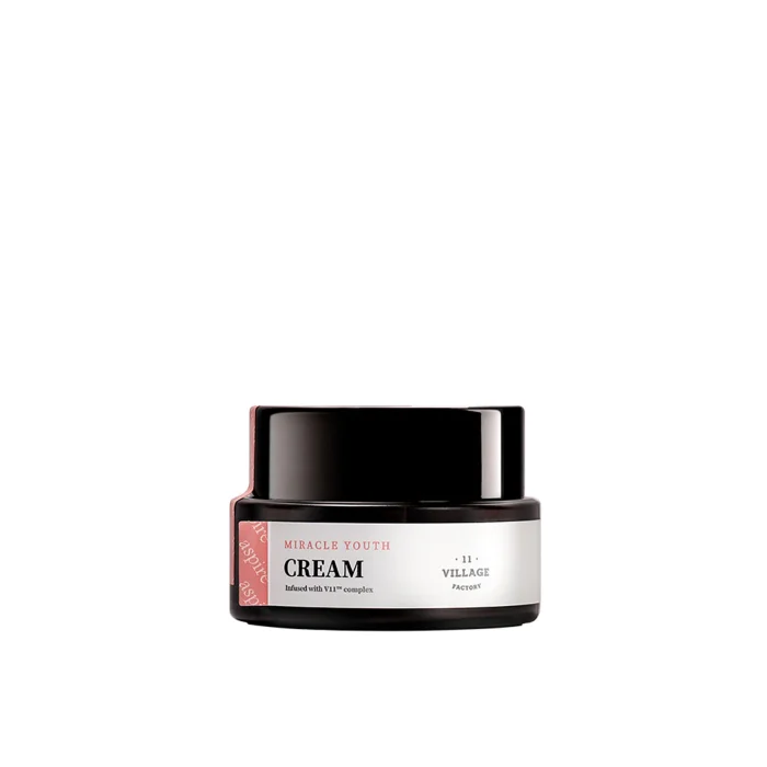 Leave Village 11 Factory Miracle Youth Cream 50 ml for the end to finish your routine with a richly textured cream and lock the tonic, essence and serum ingredients into your skin. Be sure to choose a product with ingredients that can be used with retinol.