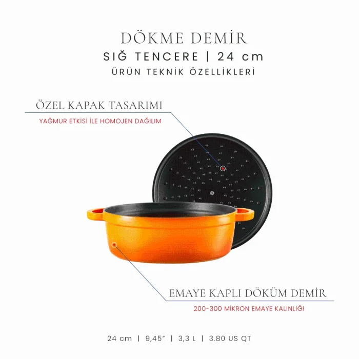 • Your food retains its heat for a long time with your Voeux cookware. The inside of your Voeux cookware is covered with durable enamel with high acid and corrosion resistance.