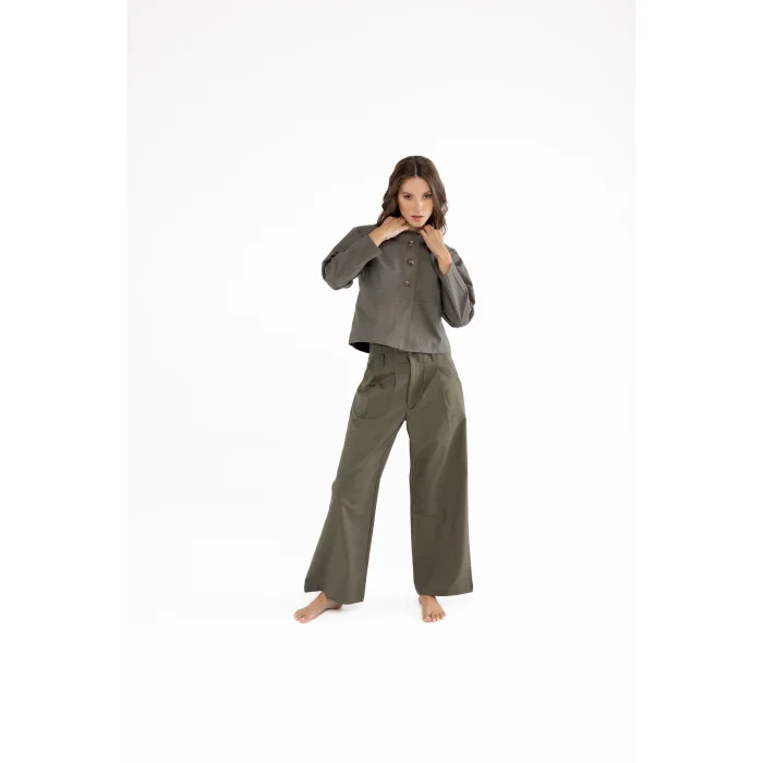 Product: Wide Leg Pleated Cotton Women's Palazzo Trousers