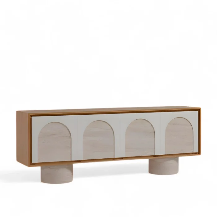 Two large cylindrical legs provide a sturdy structure that balances the overall design of the console. These feet are striking in terms of both aesthetics and durability, ensuring that the console is firmly on the ground.