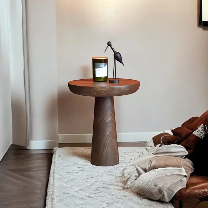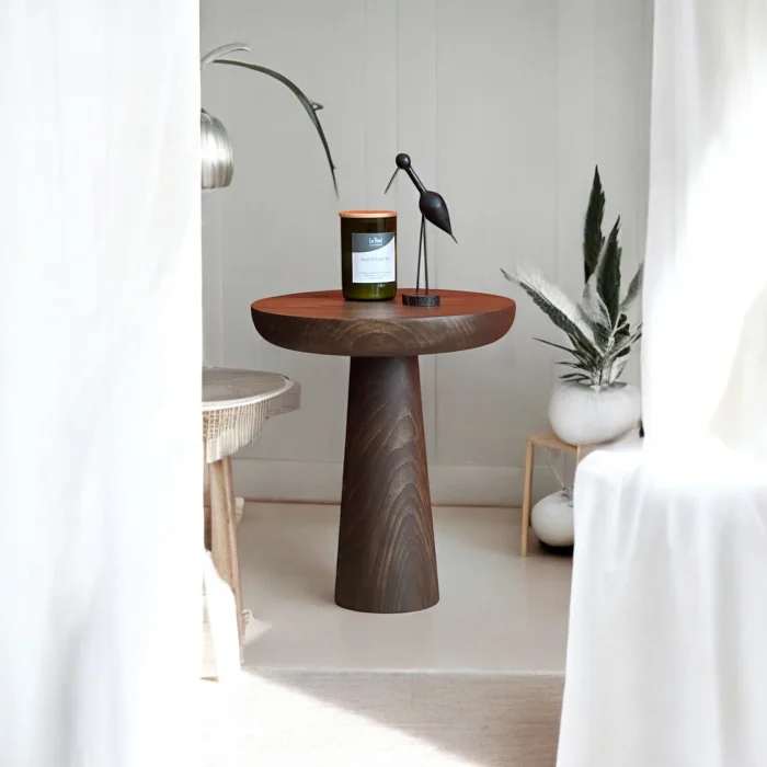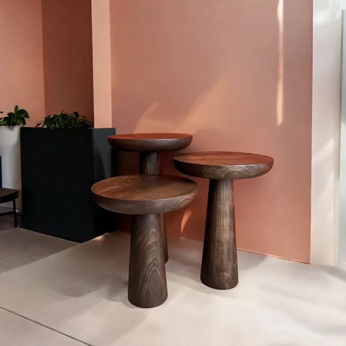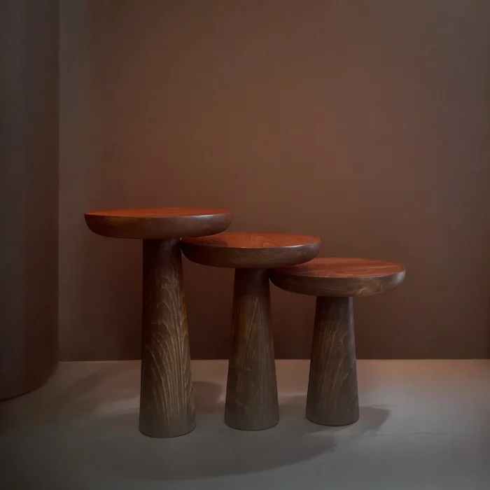 It is made of solid linden wood and finished with natural oil. Our products are handcrafted by local artisans. Since it is made of solid wood, slight differences such as knots and color tones can be observed. Not suitable for outdoor uses. It should be protected from direct sunlight. Spilled liquid should be cleaned up with a dry cloth as soon as possible. Diameter: 35 cm Small Height: Medium Height: 45 cm (+- 2 cm tolerance is available.) Large Height: 50cm (+- 2 cm tolerance is available.)