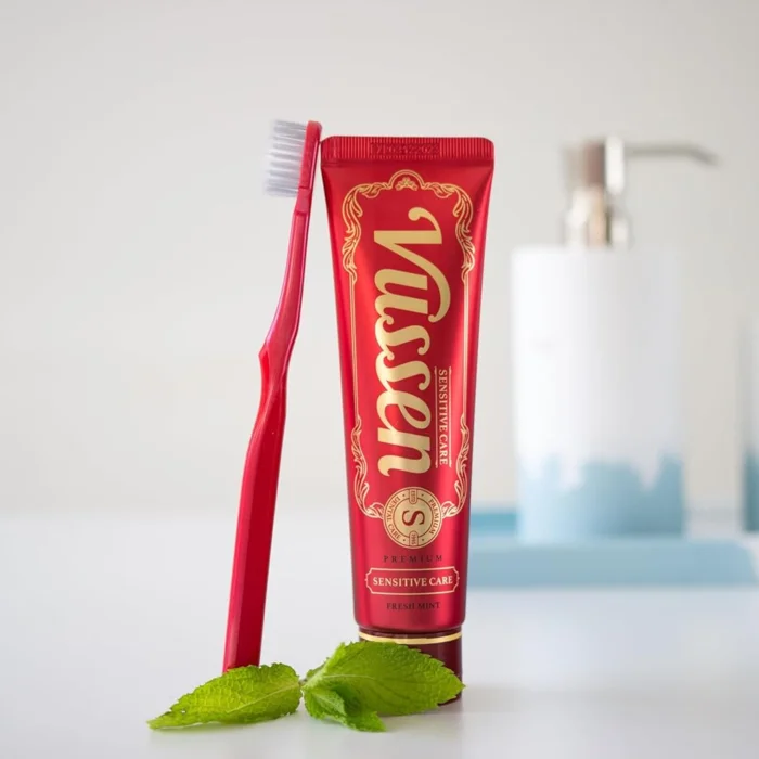 VUSSEN S Toothpaste is a fluoride-free, specially developed care product for sensitive teeth and gums. Formulated with South Korea's dermocosmetic technology, this special paste supports your oral health while protecting against hot-cold sensitivity.