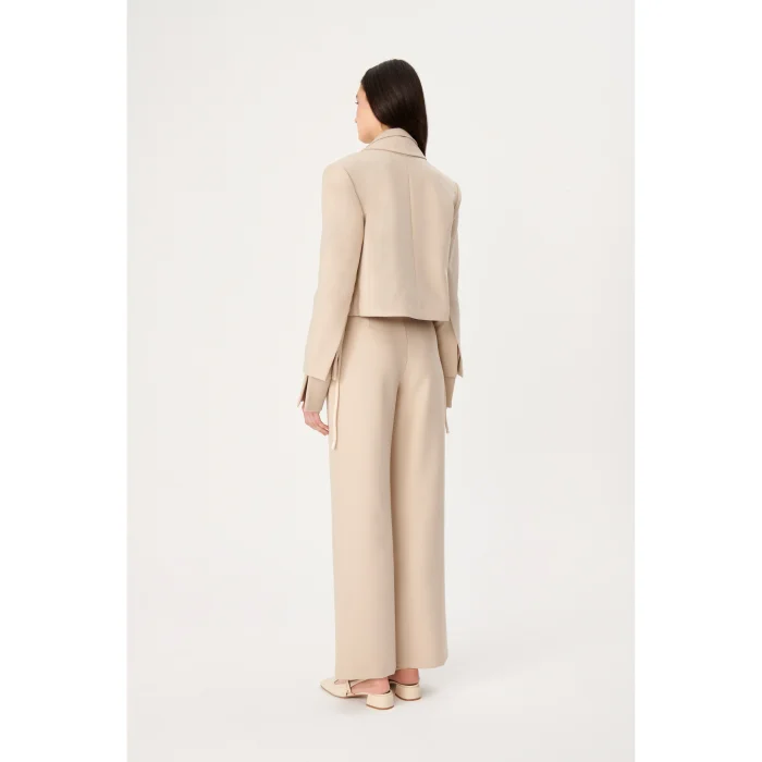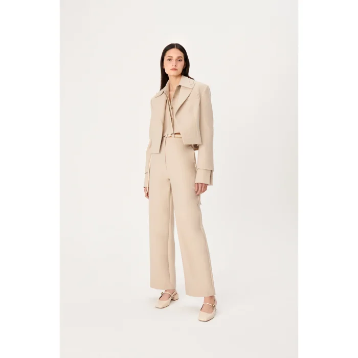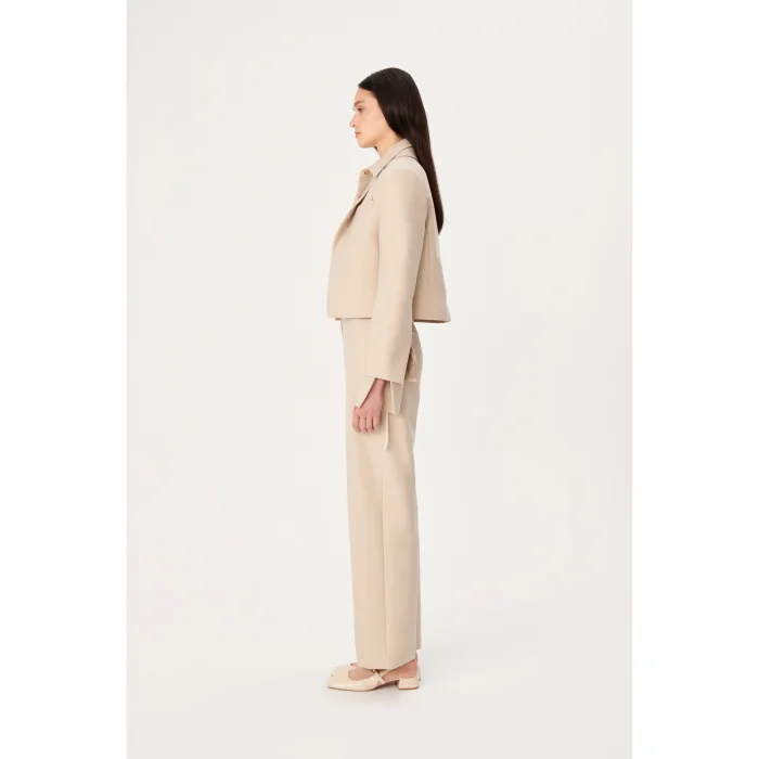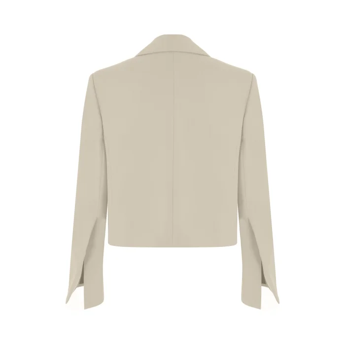 The jacket combines timeless elegance and modernity. Short and straight cut, has a modern look without buttons. Complemented by long cuffs slits that accentuate the sleeve, the jacket can be paired with any season's outfit to complete the look.