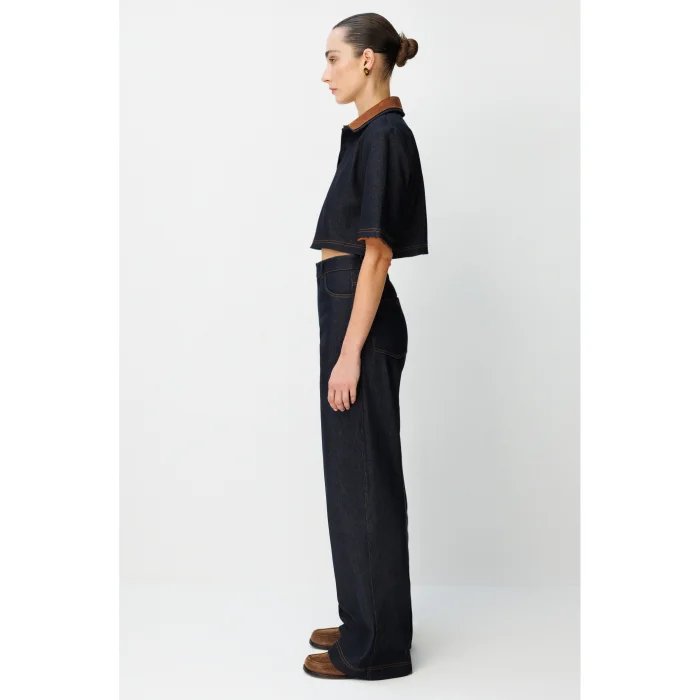 Bringing a modern interpretation to the classic denim texture, this crop top draws attention with its bold and refined details