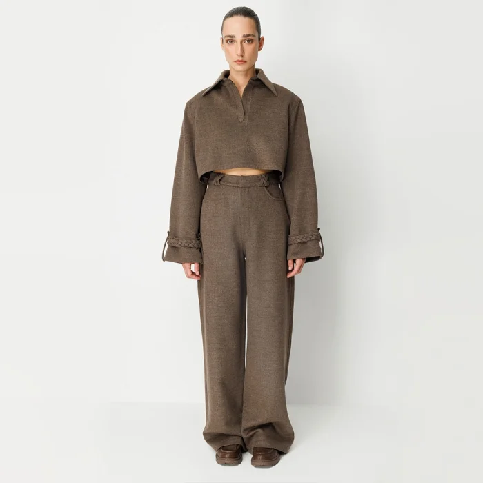 These straight-cut trousers offer both elegance and comfort together with their winter-friendly fabric. The knitted details used on the belt loops add a unique touch to the design of the trousers and create a modern silhouette with their cut. The back pocket flaps provide an aesthetic appearance. These trousers, which you can easily choose in any environment from daily use to elegant invitations, will be an indispensable part of your wardrobe. 61% Polyester 34% Viscose 4% Elastane. Model Body Measurements:. Height: 179Cm. Chest: 83 cm. Waist: 62 cm. Hips: 91 cm. Size on the mannequin: 34.
