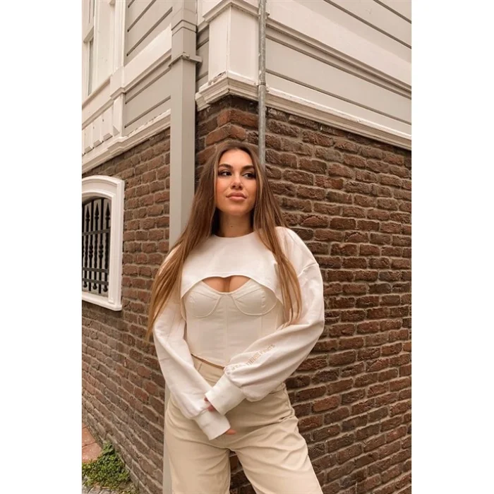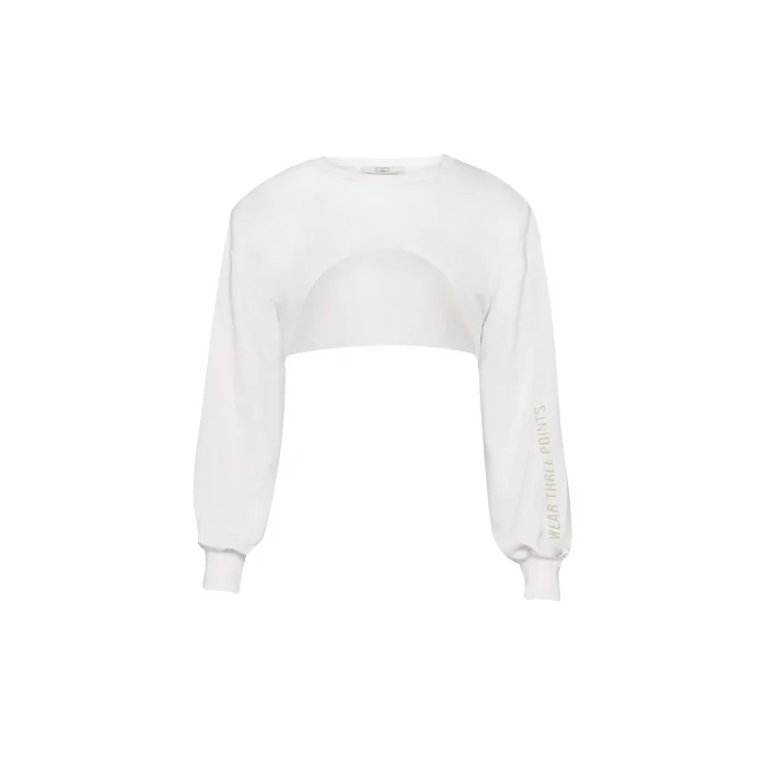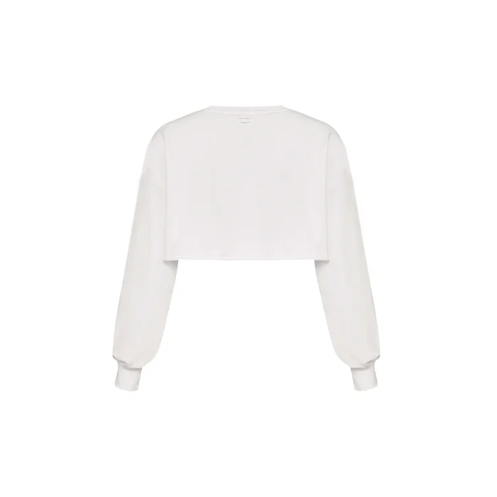 Deep crop sweatshirt with low shoulders, asymmetrical cut.