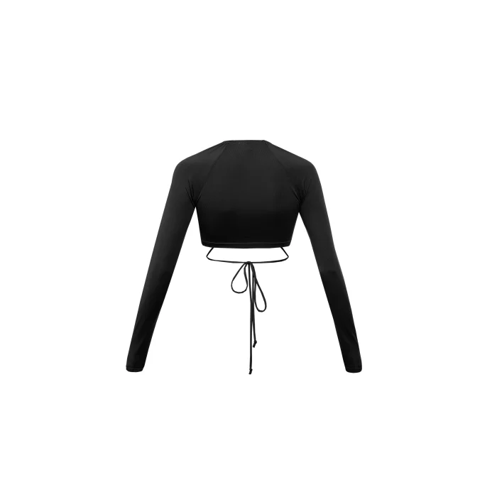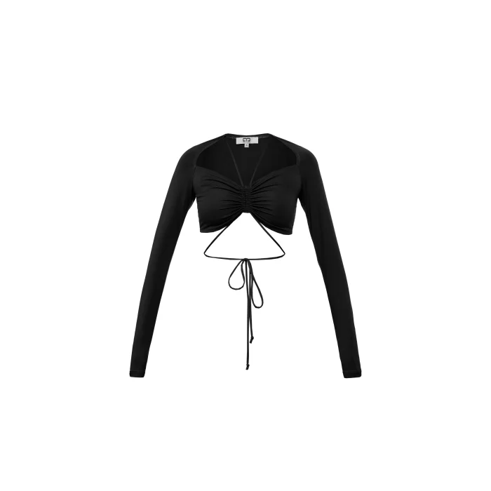 Long sleeved chest crop with drawstring and rope detailed binding.