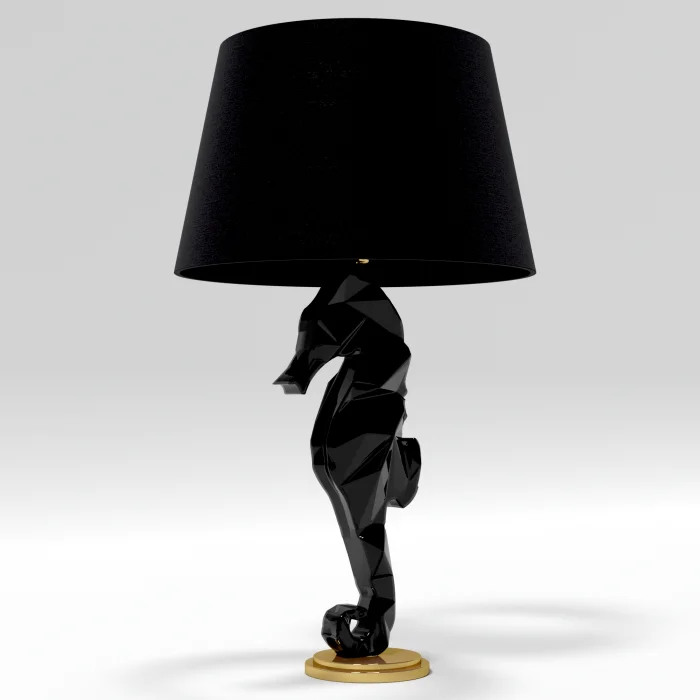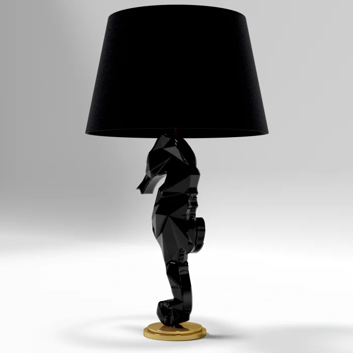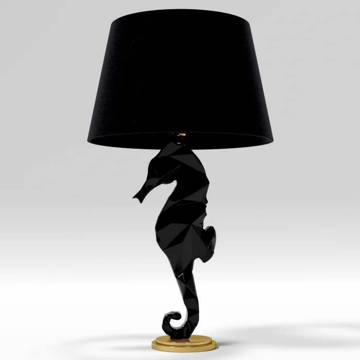 Product: Black Lacquer Lampshade With Sea Horse Figure