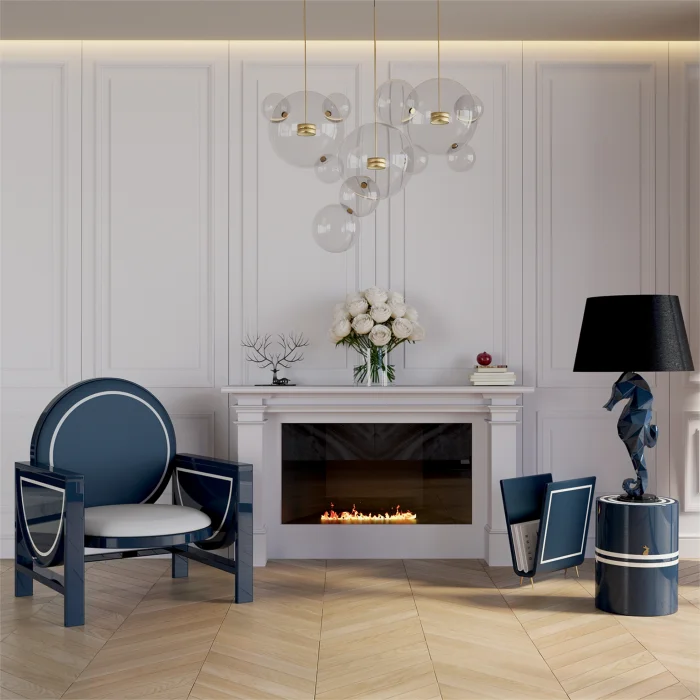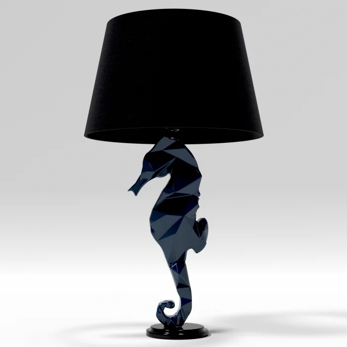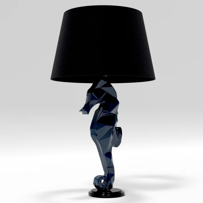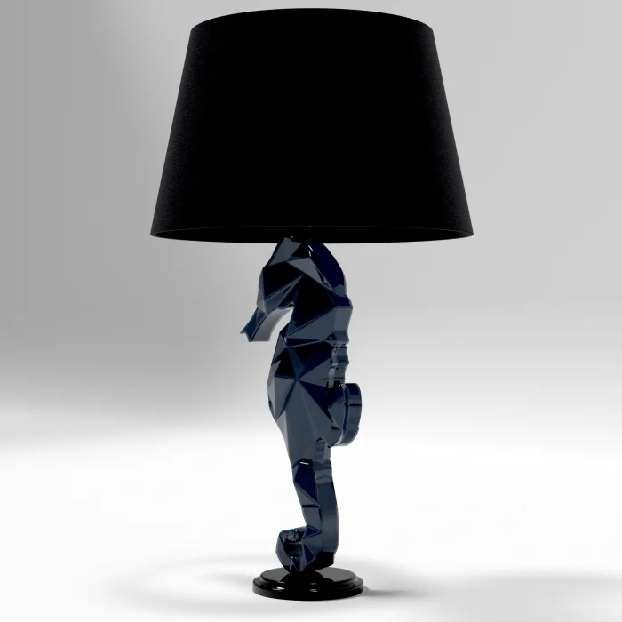 Navy Blue Lacquer Lampshade With Sea Horse Figure
