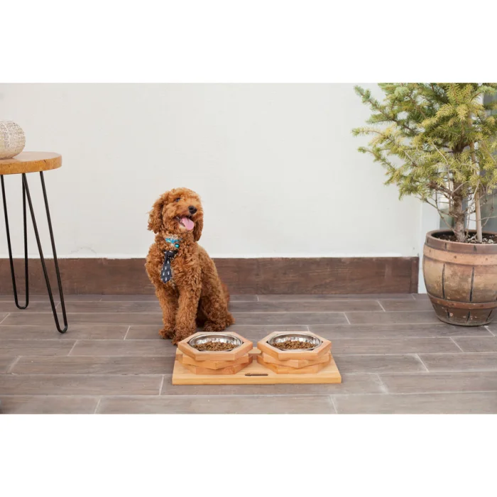 Design Natural Wood Cat-Dog Feeder
