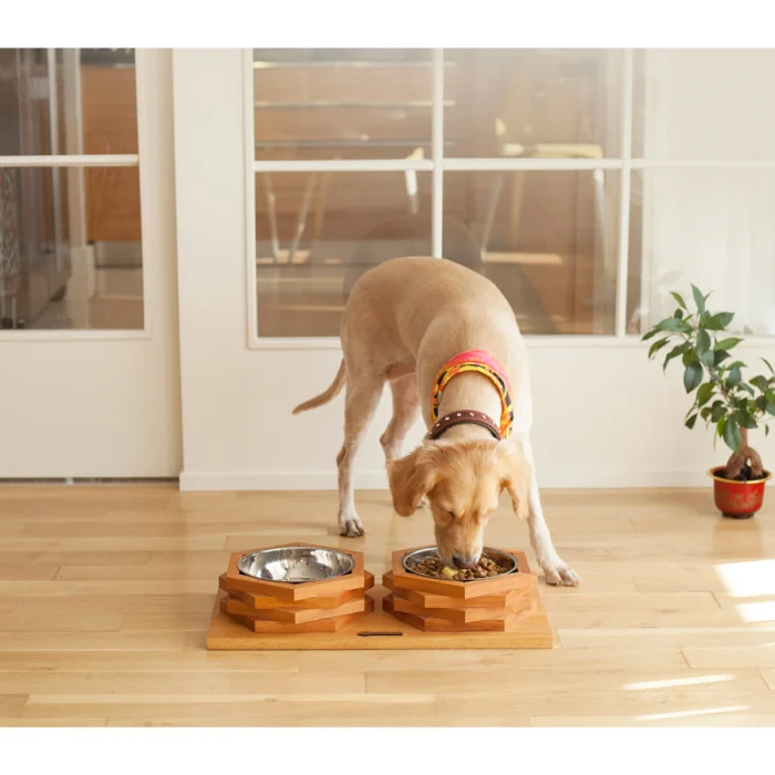 Design Natural Wood Cat-Dog Feeder
