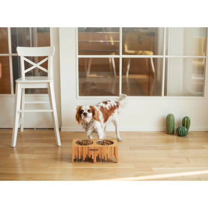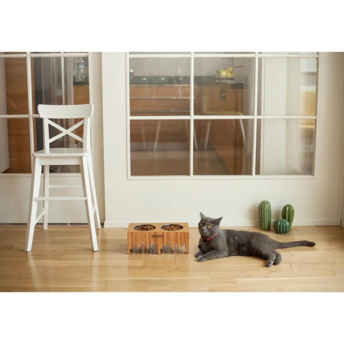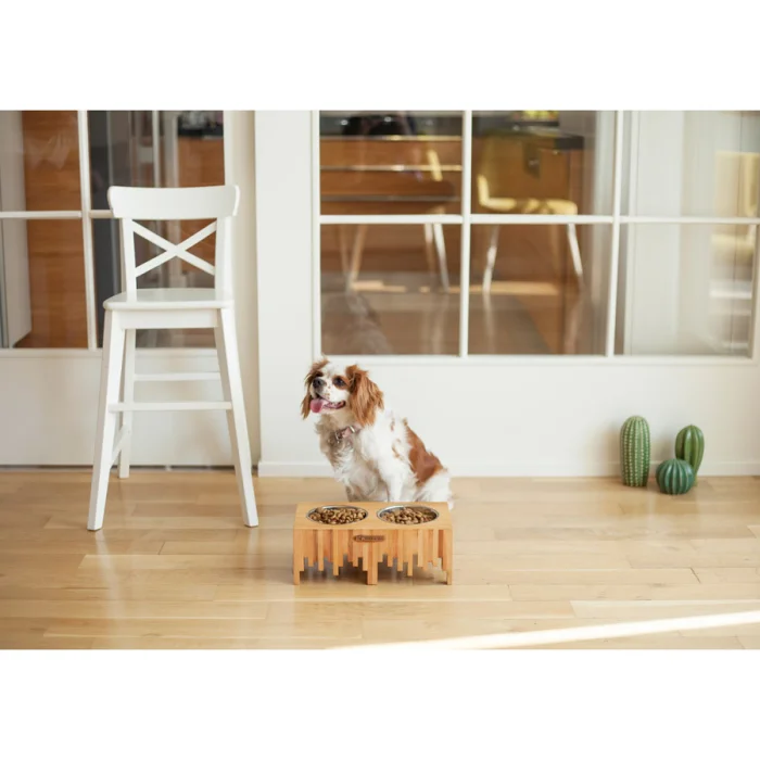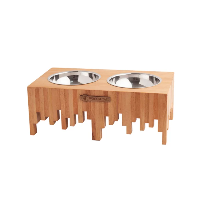 %100 beechwood stand with anti slip , stainless steel bowls.