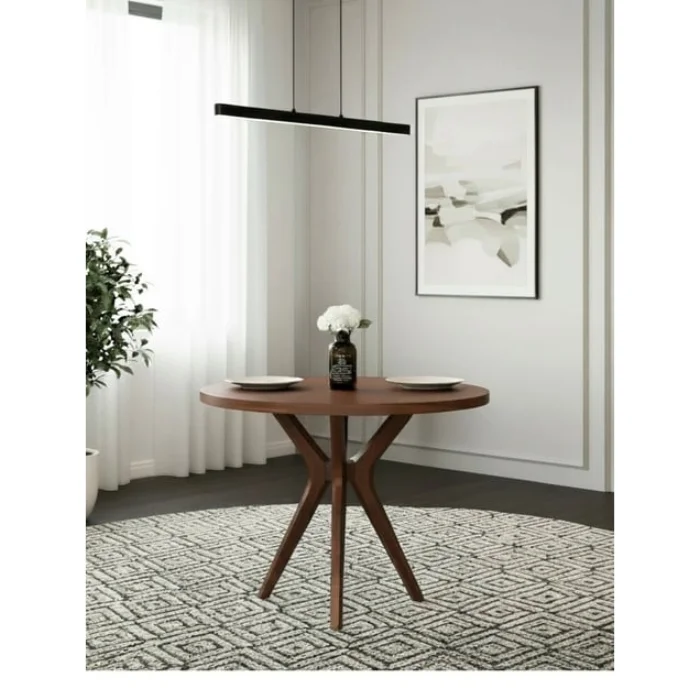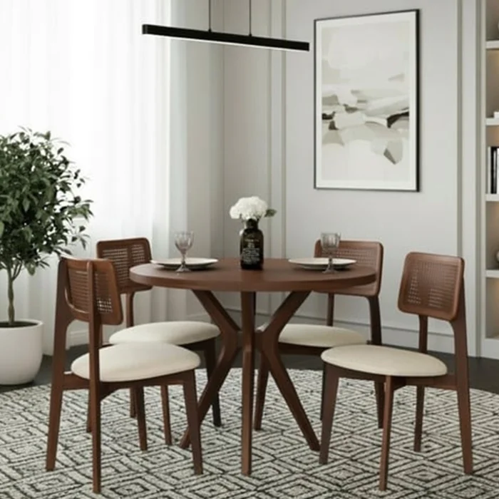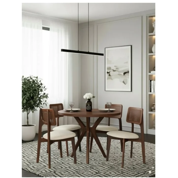 Product: Arlen Walnut Round Dining Table Set 100 Cm - 4 Dining Table With Mirla Rattan Beech Chairs