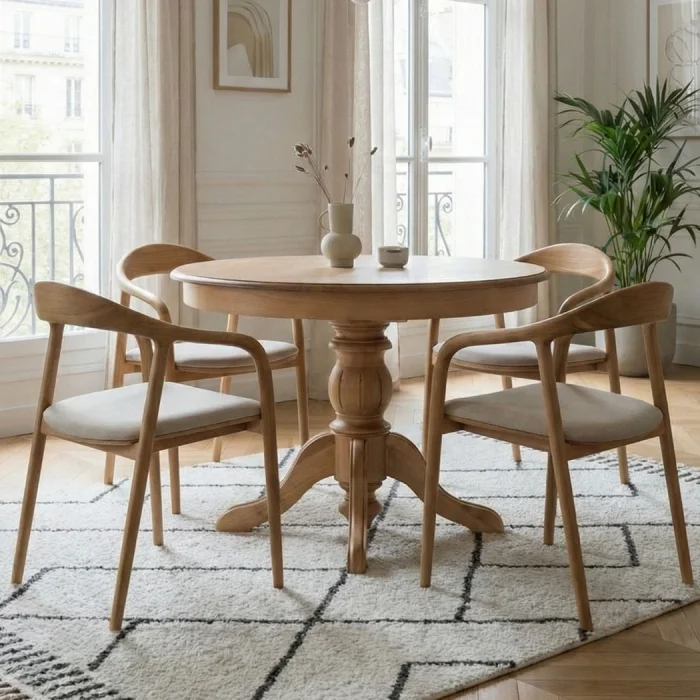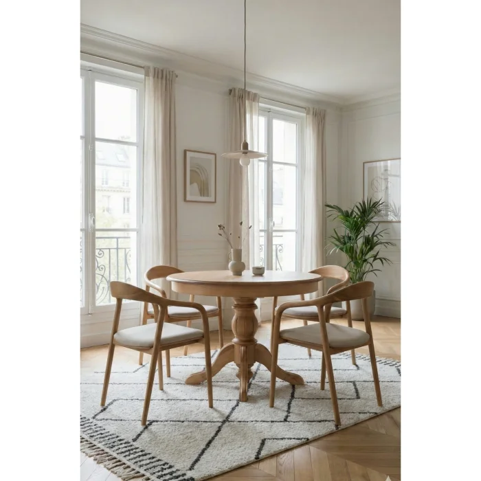 Product: Diana Naturel Round 100 Cm Wooden Extendable Dining Table Set - Table Set With Rattan Chairs