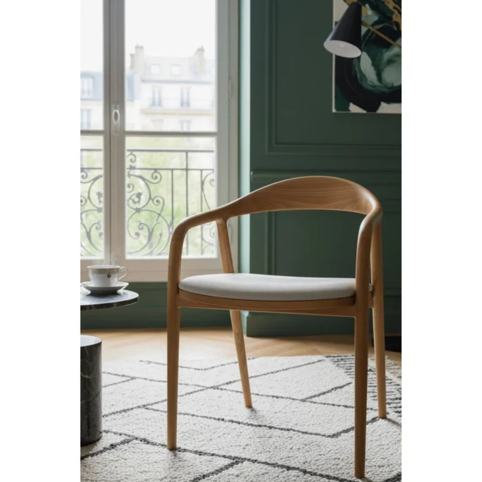 Chair Material: The body is beech wood, the seat and back are upholstered. Linen Fabric. The fabric can be selected from the Swatch.
