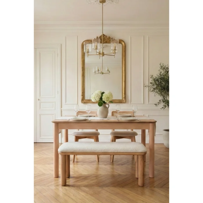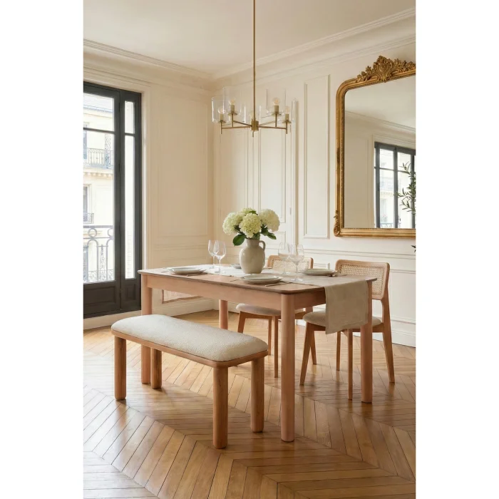 Product: Elena Natural Wooden Kitchen Table Set With Extendable Bench And 2 Chairs, - Extends To 80x150 Cm