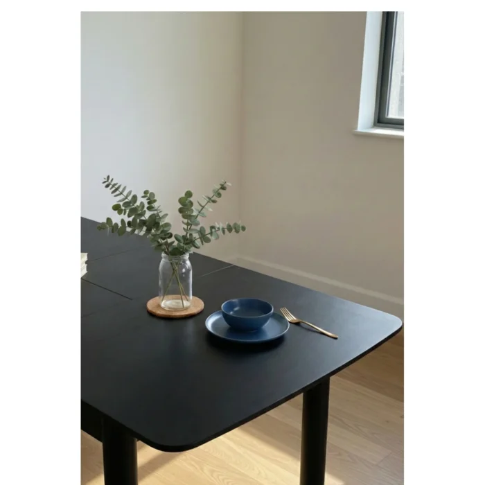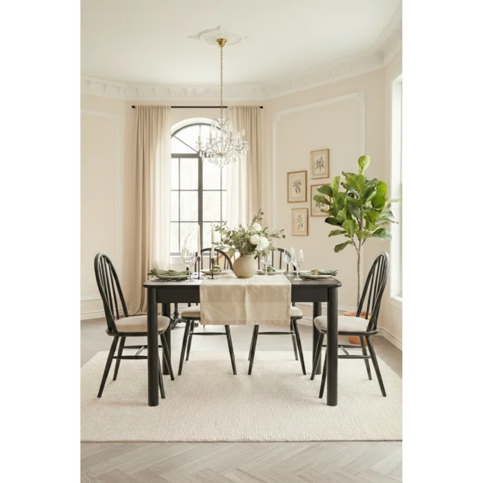 Product: Freya Black Wooden Extendable Kitchen Table Set - Vintage Design With 4 American Chairs