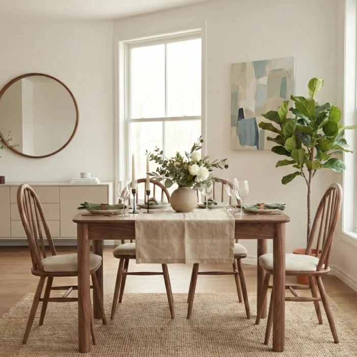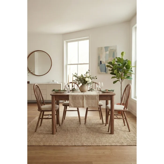 Freya Walnut Wood Extendable Kitchen Table Set - Vintage Design With 4 American Chairs