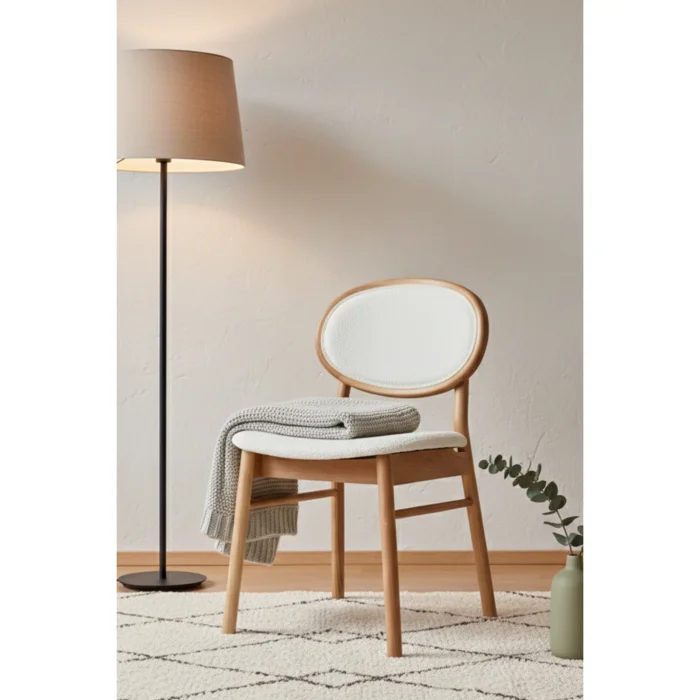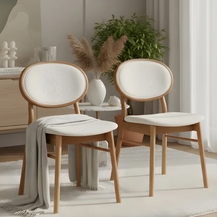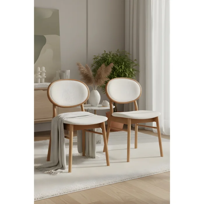 Product: Medin Natural Wooden 2-piece Beech Wood Upholstered Chair Modern Scandinavian Set