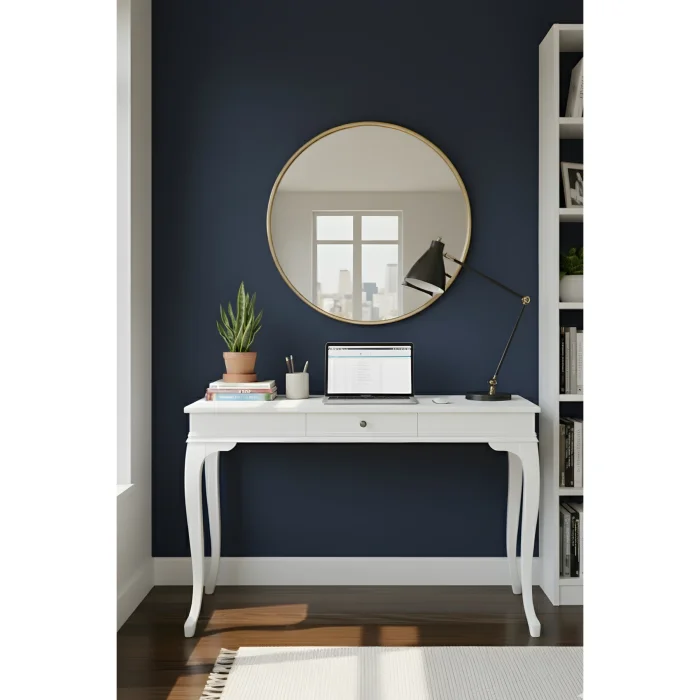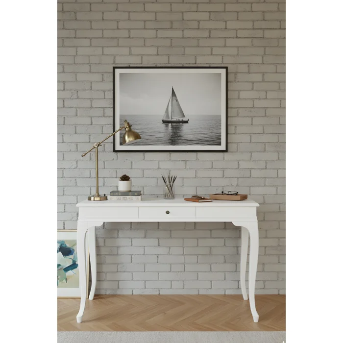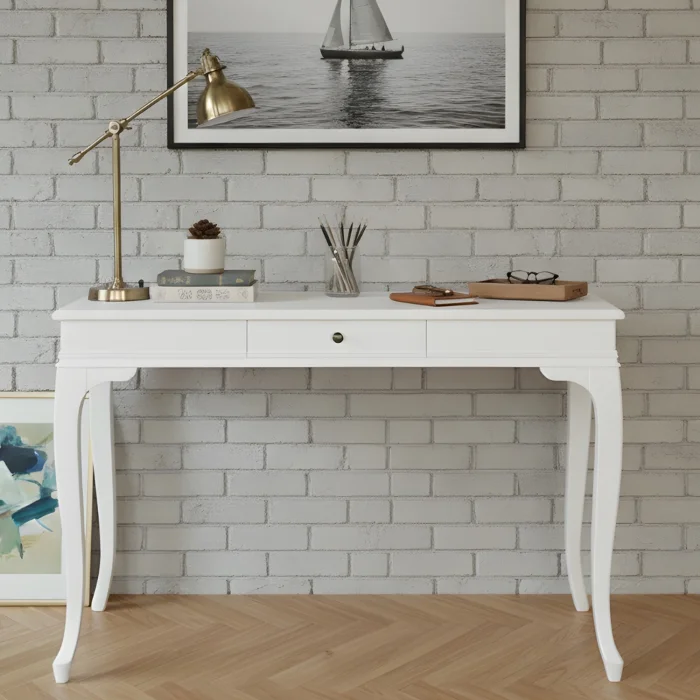 The Mirage 70x110 Lacquered White Desk combines the elegance of modern country style with rustic details, giving your living spaces a warm and stylish atmosphere. Thanks to its lacquered white color, it adds freshness to the environment and adapts to your decoration.