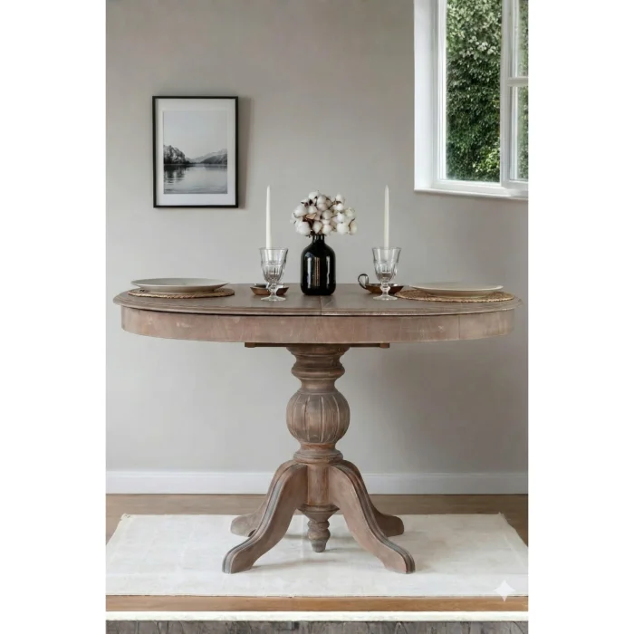 Product: Ronya Antique Finish Round Extendable Table 100x100 - 100x130 Scandinavian Bohemian Style