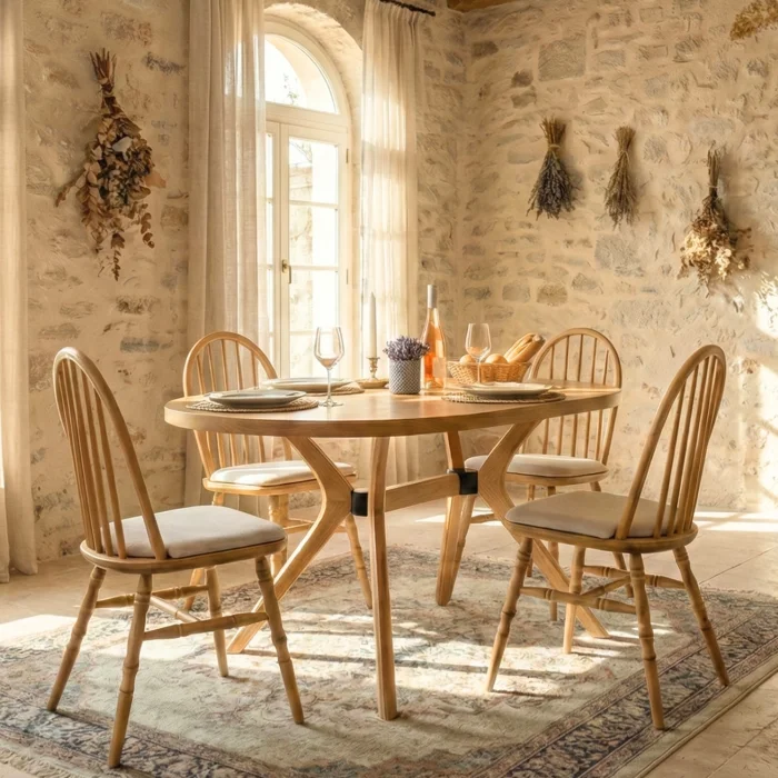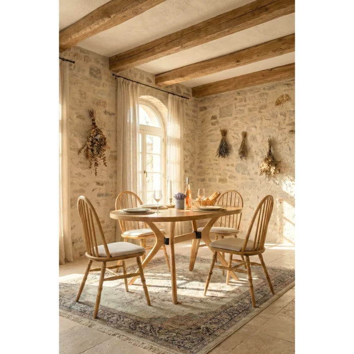 Product: Vista Oval Natural Wood Dining Table Set 80x130 Cm - Bohemian Scandinavian Design, With 4 Chairs