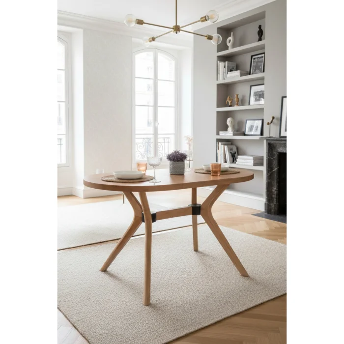 The Vista Oval  Table Set offers contrasting elegance with its top and  legs,  bringing bohemian and Scandinavian style to modern living spaces. Vista Oval Table Set 80x130 cm is a special design that combines modern Scandinavian aesthetics with bohemian details.  While the table top offers a spacious and elegant appearance; Beech wood feet provide a strong stance. It is both stylish and useful with its 4 chairs with ergonomic structure. Its oval form allows for easy use in narrow spaces and adds a modern touch to dining areas. It provides practical use with its easy-to-clean surface and maintains its elegance for many years.