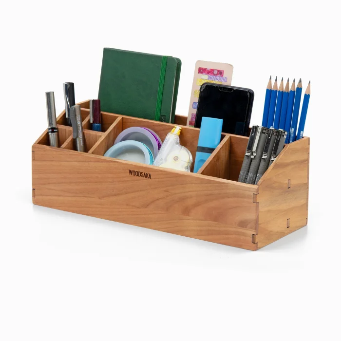 Woodsaka Tilt Desktop Organizer - 7 Compartments - Cherry