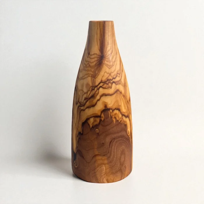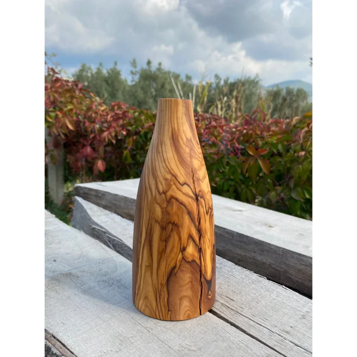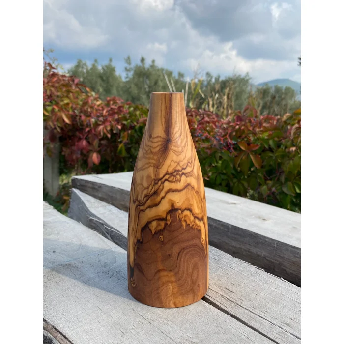 It is handcrafted from olive wood. Each product is unique, with its own unique veining patterns. It is robust and long-lasting. It is a sustainable and aesthetic product.