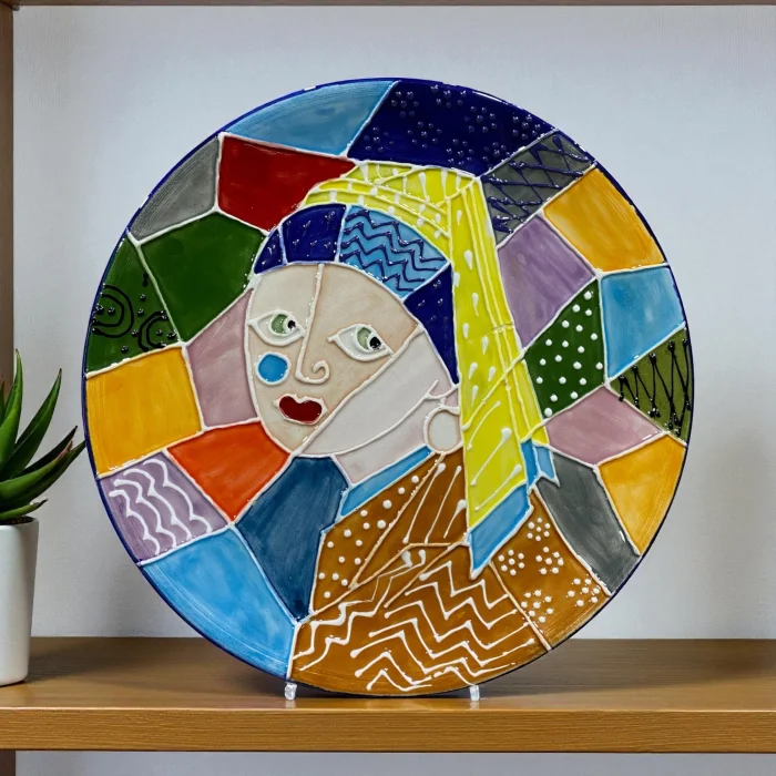 Product: Embossed Ceramic Wall Plate Inspired By Girl With A Pearl Earring- 24 Cm