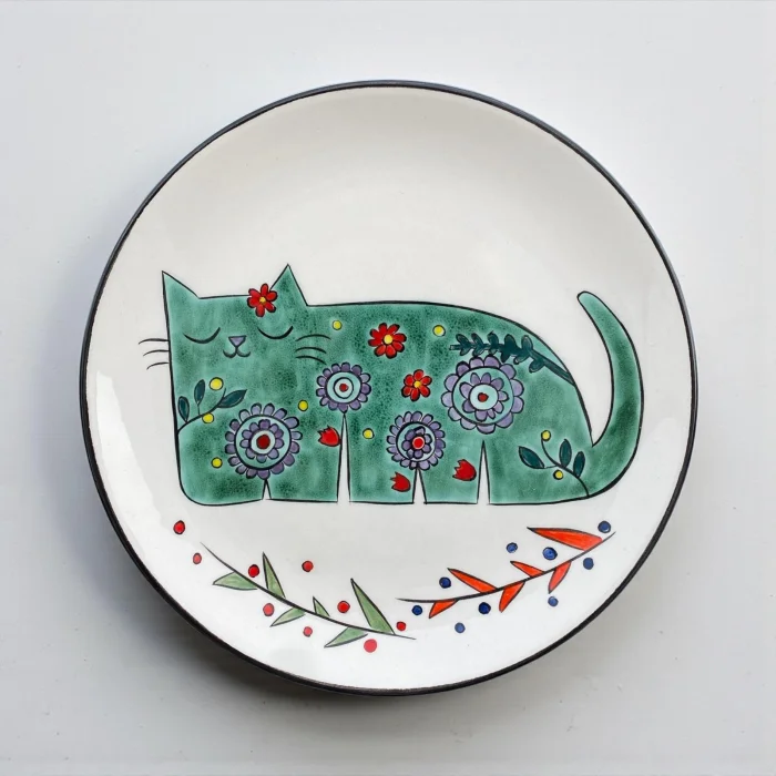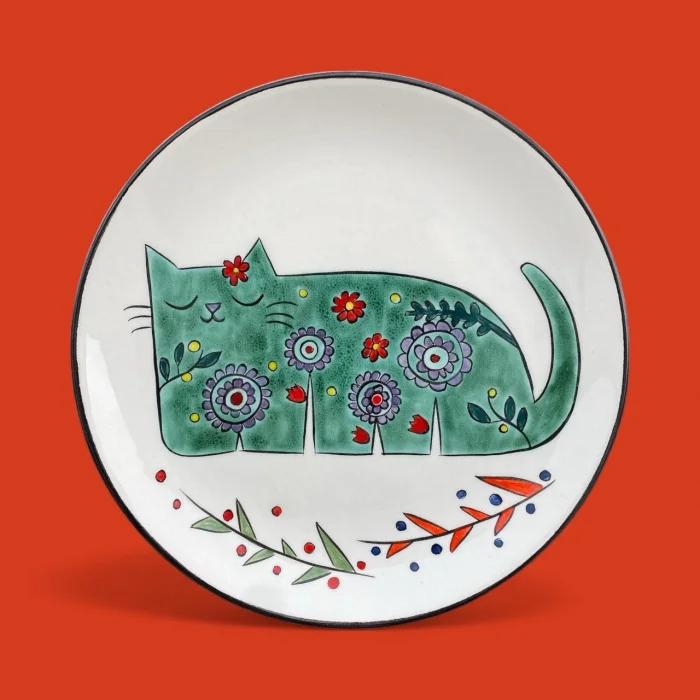 Product: Green Cat Ceramic Cake, Dessert Plate-18 Cm