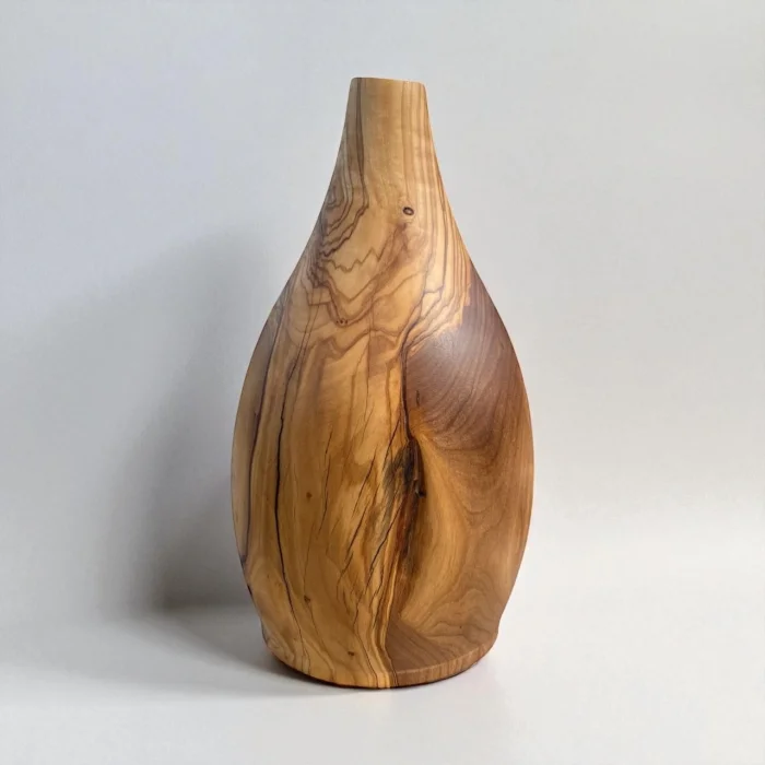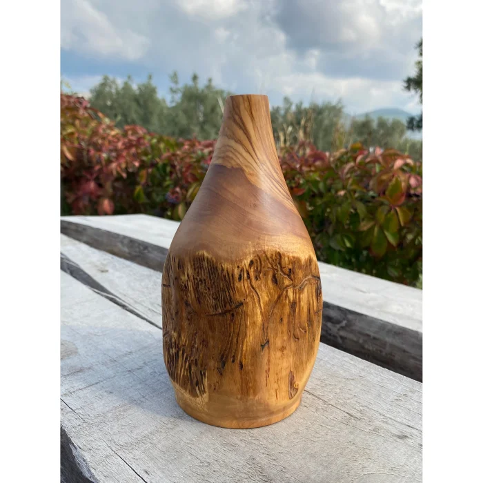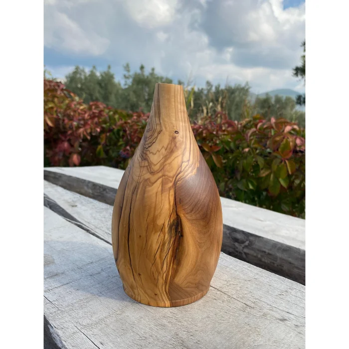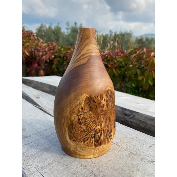 It is handcrafted from olive wood. Each product is unique, with its own unique veining patterns. It is robust and long-lasting. It is a sustainable and aesthetic product.