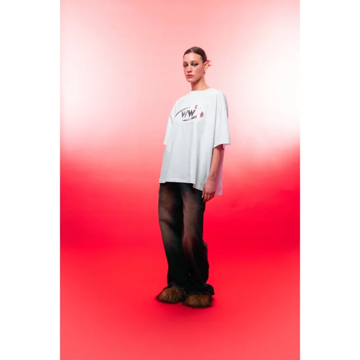 Ww23 T-Shırt Sılver *Ww23 Embossed Printed Oversize T-Shirt . *Oversize. *Unisex -Color *White/Silver -Size On Model (S)