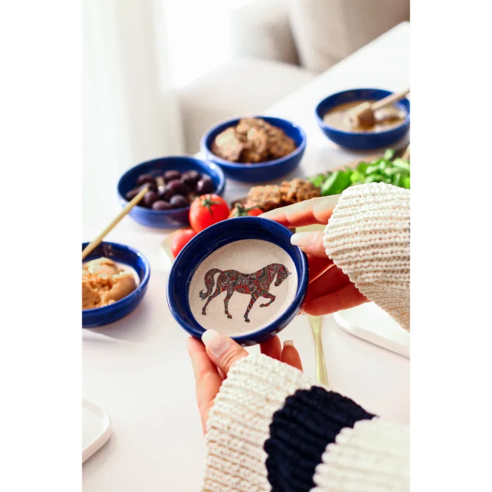 A touch from Yaffy Home Design that will add elegance to your tables: Horse Patterned Ceramic BowlStanding out with its eye-catching design and usefulness, the Horse Patterned Ceramic Bowl is designed to add color and elegance to your tables. With a diameter of 10 cm and a depth of 3 cm, this bowl is ideally sized, making it the perfect choice for serving a wide range of foods, from your cookies to your breakfast cereal, from your yogurt to your fruits.