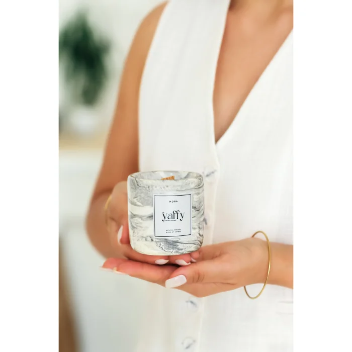 YAFFY Home Design adds a unique touch to your home with its soy wax candle collections that combine naturalness and aesthetics. These candles, each carefully designed, bring warmth and elegance to your living spaces. Feature highlights: Natural Soy Wax: Our candles are made using 100% natural soy wax, which is an eco-friendly and sustainable option. This results in a cleaner and longer-lasting burn. Unique Concrete Design: Each candle is presented in handmade concrete containers that offer a modern and industrial aesthetic. This design adds elegance to your home by adapting to any decoration style.