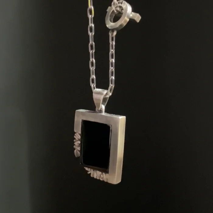 •MATERIAL: 925 Sterling Silver •STONE: Onyx Stone •LENGTH: 22 mm •WIDTH: 18 mm •WEIGHT: 5.5 grams (Pendant) •AĞIRLIK2: 6 grams ±2 (chain) • All of our products are handcrafted using 925 sterling silver.