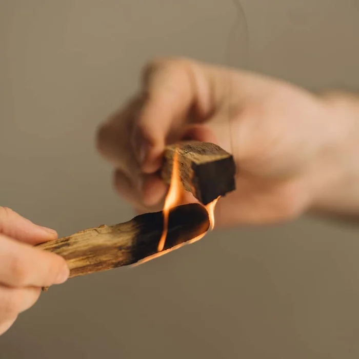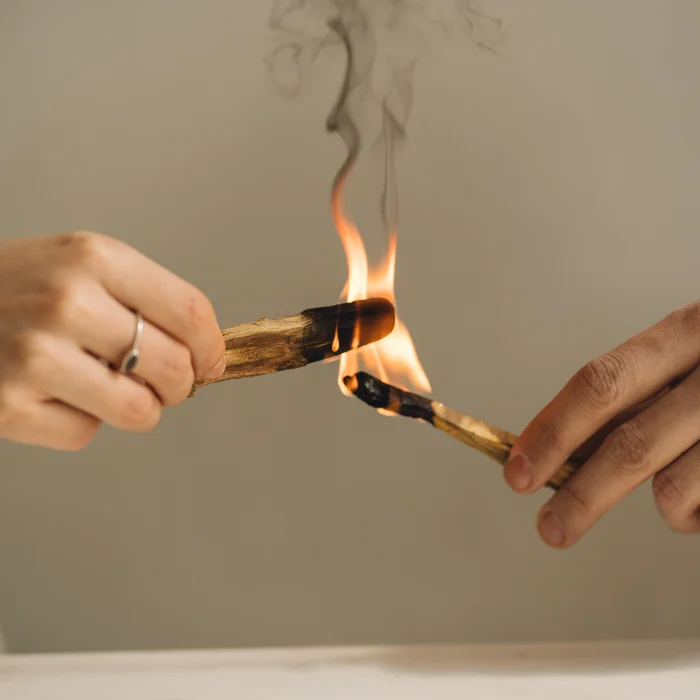 Light the tip of your Palo Santo stick for about 30 seconds until a flame forms. Blow it out gently; the stick will continue to smolder for approximately 2 minutes. This duration is sufficient to cleanse and balance both your energy and the energy of the space you are in. The stick will naturally extinguish itself within a few minutes. Each stick can be used around 10 times by relighting the tip whenever needed.