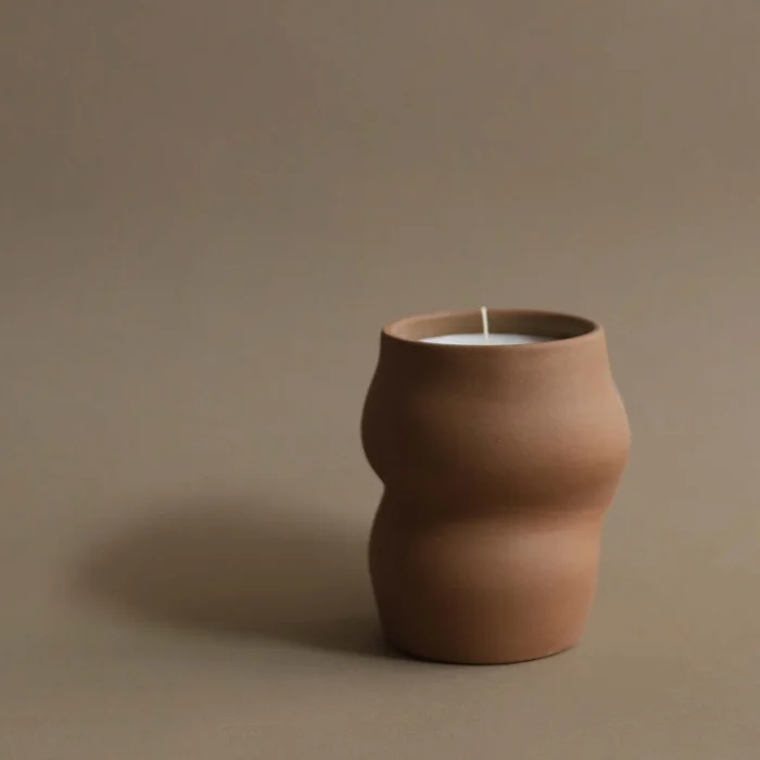 Inspired by the fluid forms of nature, Soa Candle Holders are shaped with soft curves that create a rhythmic and sculptural presence. The earthy tone evokes a sense of grounding, while the black accent highlights the contours of the form, bringing together simplicity and elegance in a contemporary line.