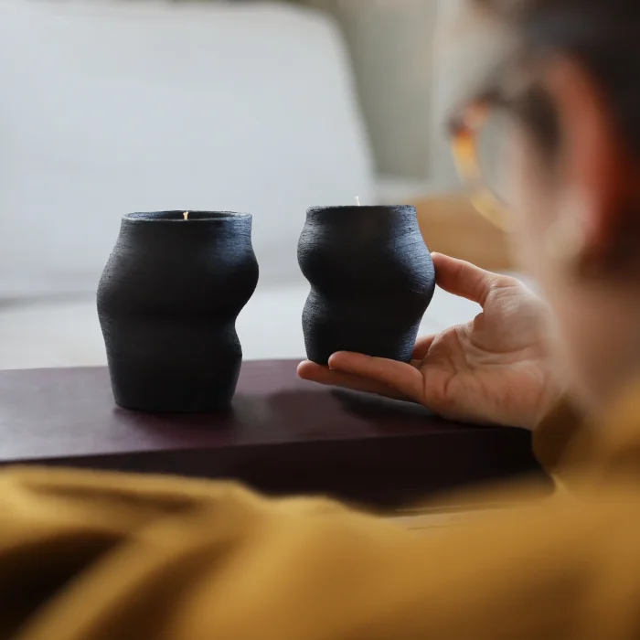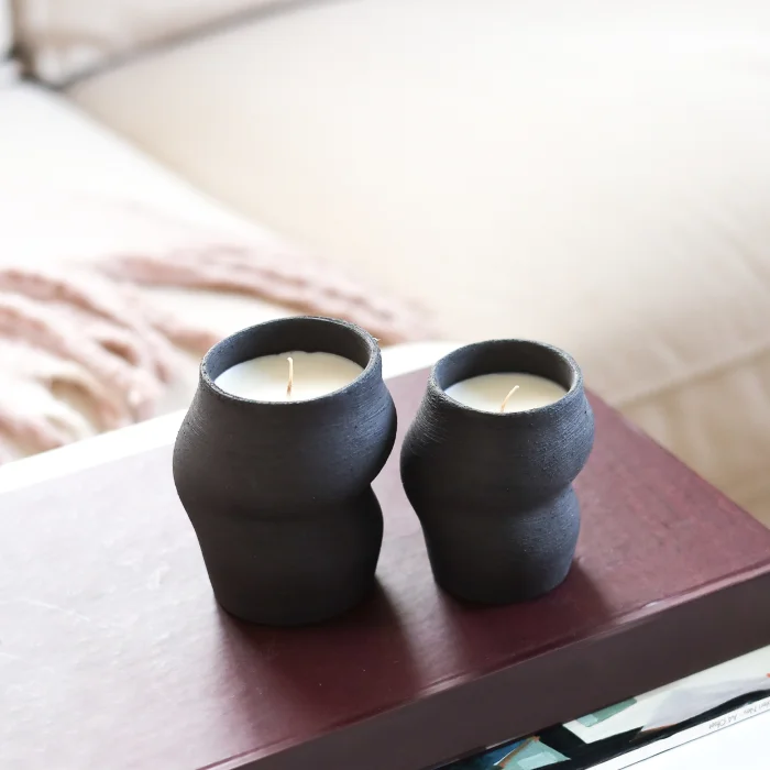 Inspired by the fluid forms of nature, the Soa Candle Holders feature soft curves that create a rhythmic and sculptural presence. While earthy tones evoke a sense of grounding, black accents highlight the contours of the form, bringing together simplicity and elegance in a modern expression.
