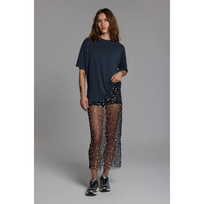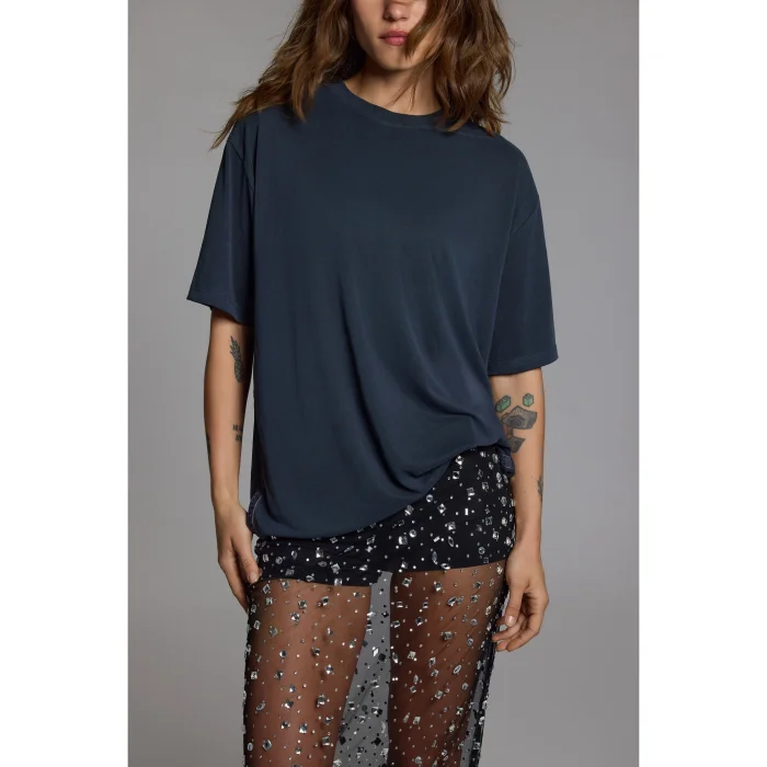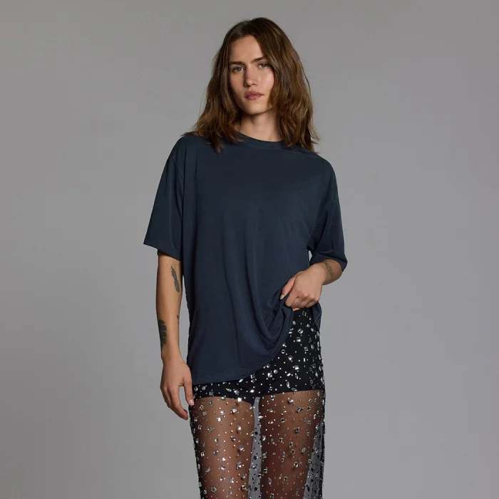 Designed for everyone who loves oversized silhouettes, this unisex T-shirt offers a comfortable and modern look for both men and women. Its cut creates a strong shoulder line for men, while providing a relaxed and effortlessly cool drape for women. With its soft texture and fluid fabric, it ensures all-day comfort, and its minimalist design makes it easy to pair with any style.