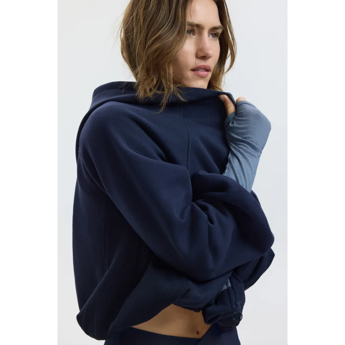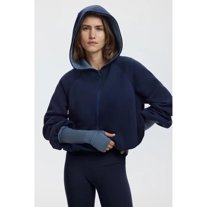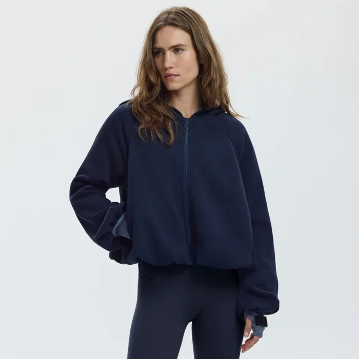 This hooded sweatshirt, with its balloon sleeves and cropped silhouette, is one of our favorite pieces from the outerwear collection.