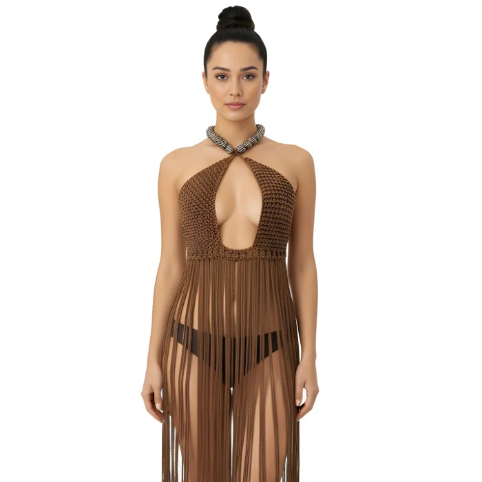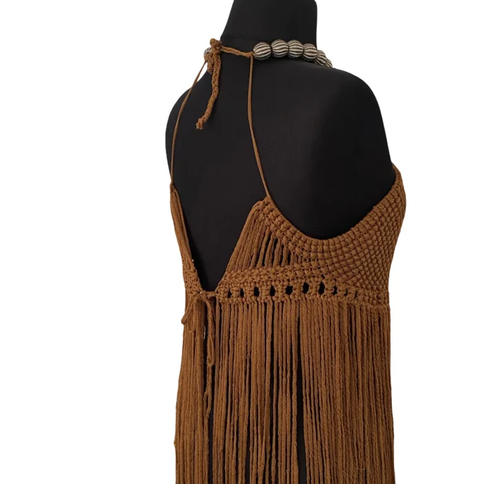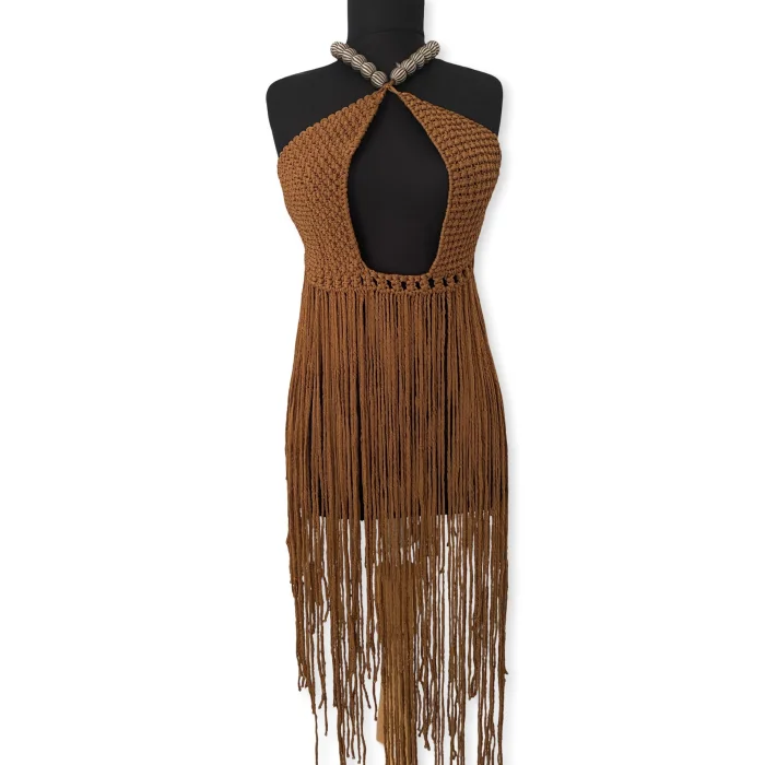 your summer style to the top with this breathtaking macrame dress, handcrafted. This special design, which will allow you to go beyond the ordinary with its texture, form and long tassel details, is a candidate to be the most striking piece of your wardrobe.