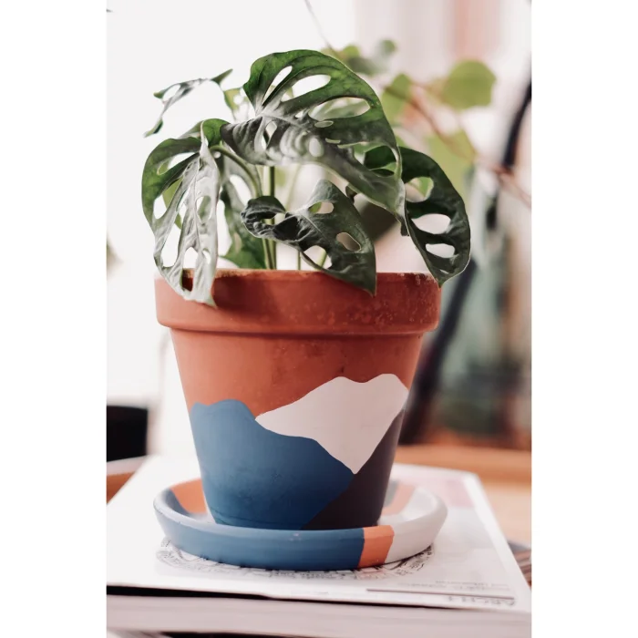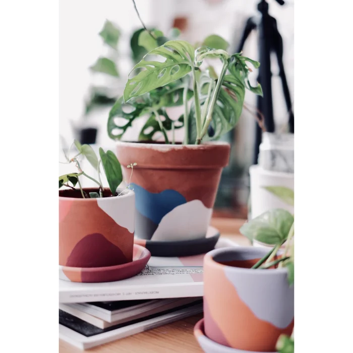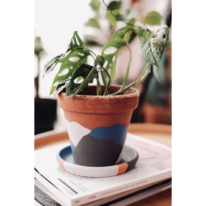 Hand Painted Terracotta Flower Pot + Plate.