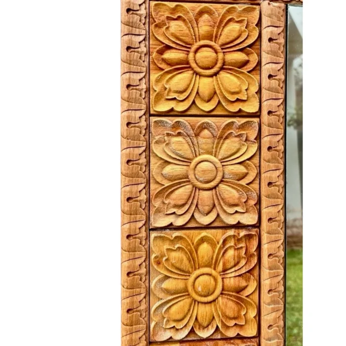 Reflecting all the splendor of wood, this unique mirror is made entirely of Beech Wood, known for its durability and decorative beauty. This mirror, shaped by hand, consists of 4 special motif frame edges.
