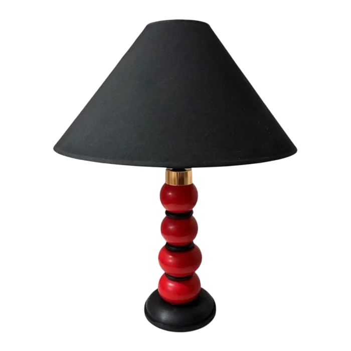 Ladybug lampshade is made of solid beech balls, completely handcrafted 1. The classroom is painted with decoration paint and protected with water-based varnish. Again 1. A hat is worn on quality fabric and metal frame. A decorative golden yellow metal apparatus is attached to the hat with balls. Inspired by the shell structure of the ladybug, black rings are placed in between.