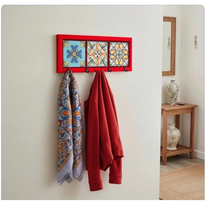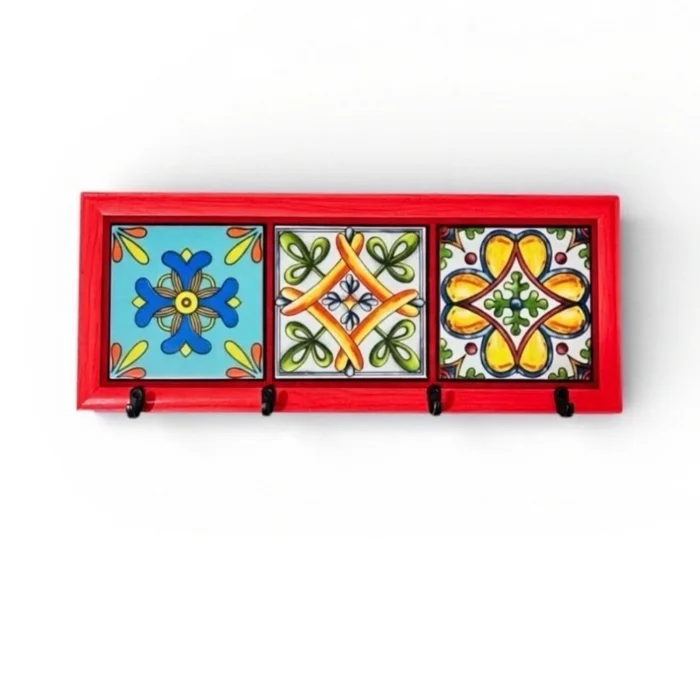 It is handcrafted. Natural wood and porcelain tiles are used. It is a stylish and useful decoration product.